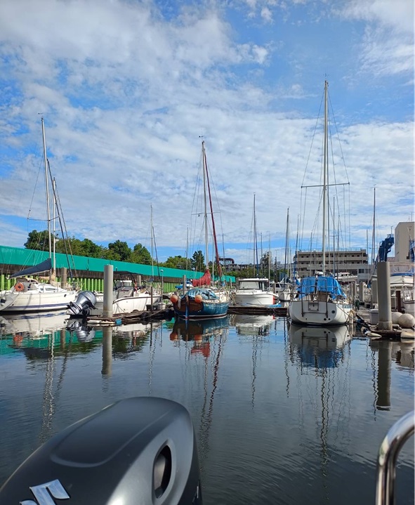 マリーナ付近は穏やかで意気揚々に出航です