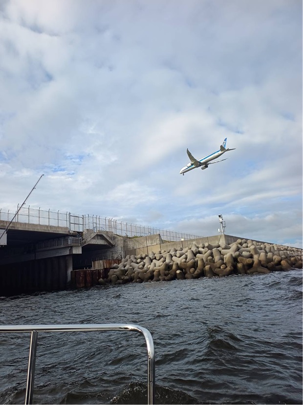 最初はアクアライン付近を目指してましたがうねりが強く釣りにならないとの事で羽田空港に変更になりました